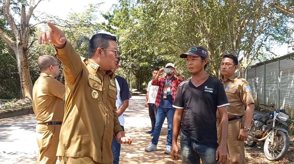 “Mana pemilik pekerjaan ini, tolong panggil sini, masa jalan dibiarkan begitu saja, jalan jadi licin ini,” ujar Bupati Bangka Selatan Riza Herdavid kepada pekerja saat berada di gudang.