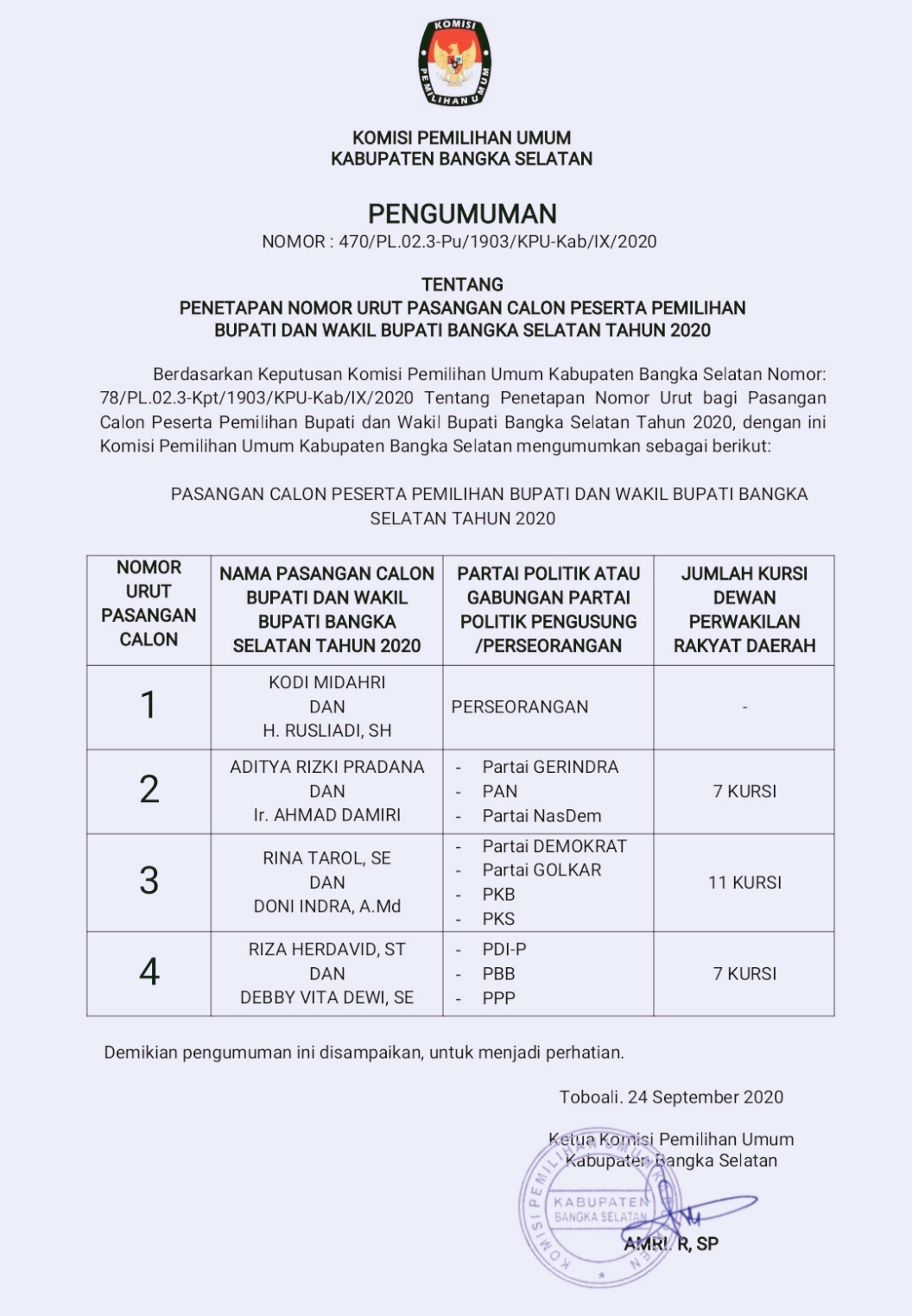 Pengumuman KPU Basel Soal Penetapan Nomor Urut Peserta Pilkada 2020 Admin24 September 202026 September 2020 Foto ilustrasi.