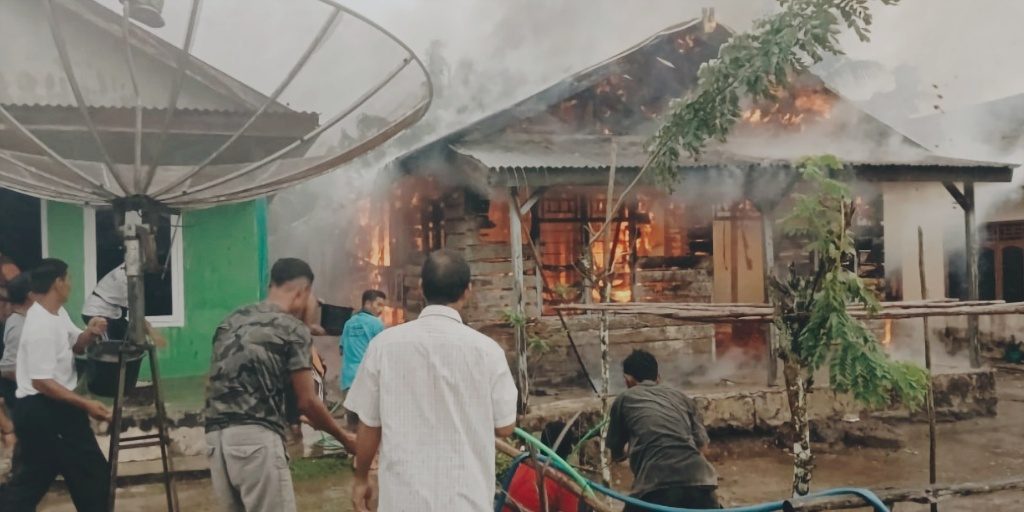 Rumah Bakarudin Terbakar, Warga Teriak Histeris dan Berusaha Padamkan Api
