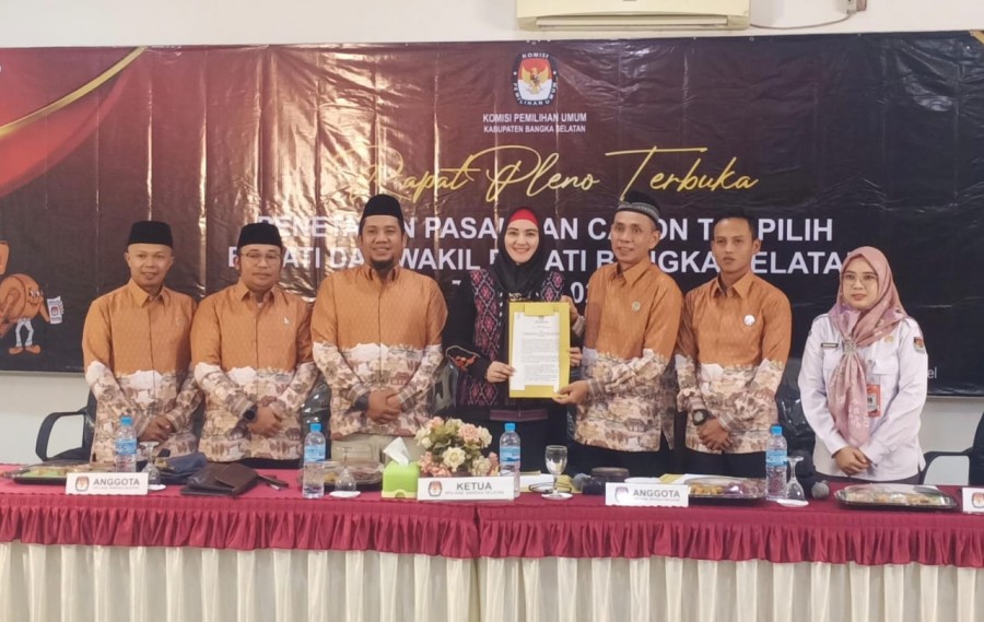 BERITABANGKA.COM – Bupati Bangka Selatan H. Riza Herdavid, S.T., M.Tr.IP. melalui Wakil Bupati Bangka Selatan Hj. Debby Vita Dewi, S.E., M.M. menghadiri Rapat Pleno Terbuka Penetapan Pasangan Terpilih Bupati dan Wakil Bupati Bangka Selatan tahun 2024 yang diselenggarakan Komisi Pemilihan Umum Kabupaten Bangka Selatan, bertempat di Grand Marina Hotel, Kamis (9/1/2025) pukul 14.00 WIB.