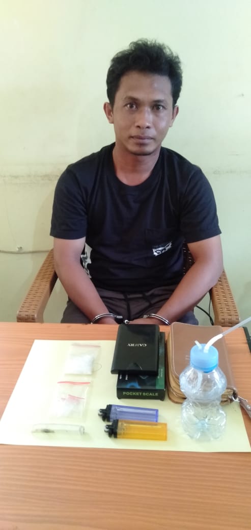 Sapar (31) warga Toboali, Kabupaten Bangka Selatan tak berkutik saat disergap anggota tim Satuan Reserse Narkoba (Satresnarkoba) Polres Basel, Kamis (22/7/2021) tadi pagi.